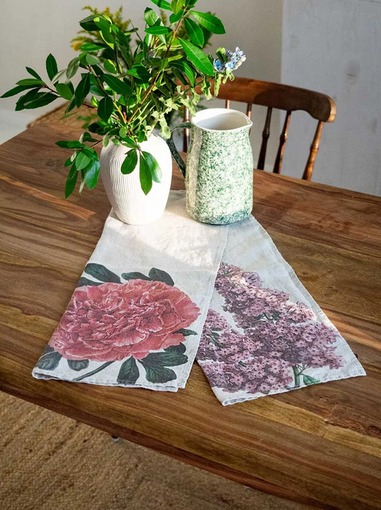 European Linen 'Peony & Lilac' Pair of Tea Towels