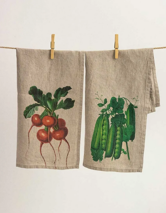 European Linen 'Peas & Radishes' Pair of Tea Towels