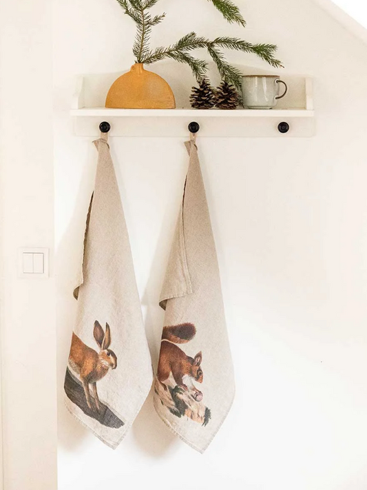 European Linen 'Hare & Squirrel' Pair of Tea Towels