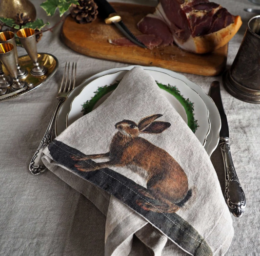 European Linen 'Hare' Set of 6 Linen Napkins