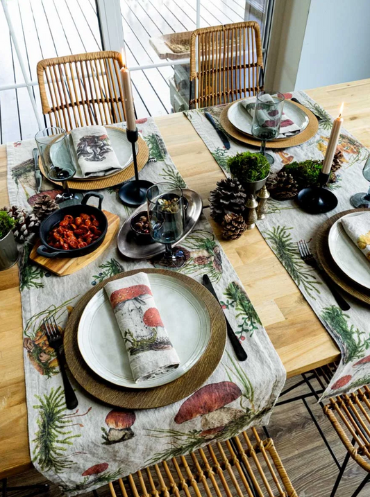 European Linen 'Forest Mushrooms' Table Runner