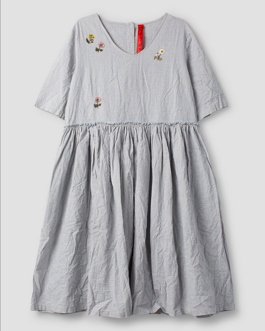 Ewa i Walla 'Kjella' Checked Dress With Embroidered Flowers LAST ONE Size XS