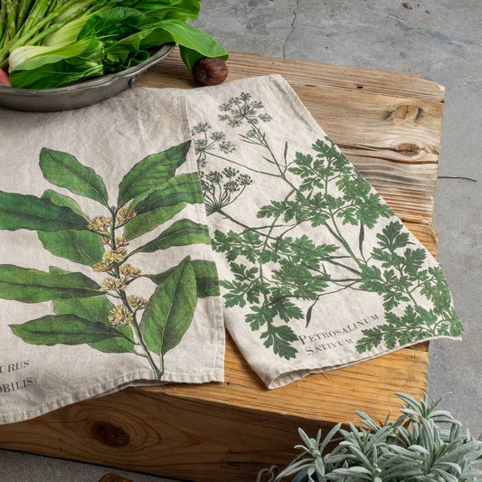 European Linen 'Parsley And Bay' Pair of Tea Towels