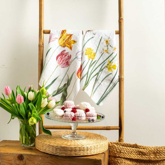 European Linen 'Tulips And Narcissus' Pair of Tea Towels