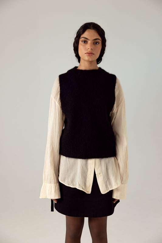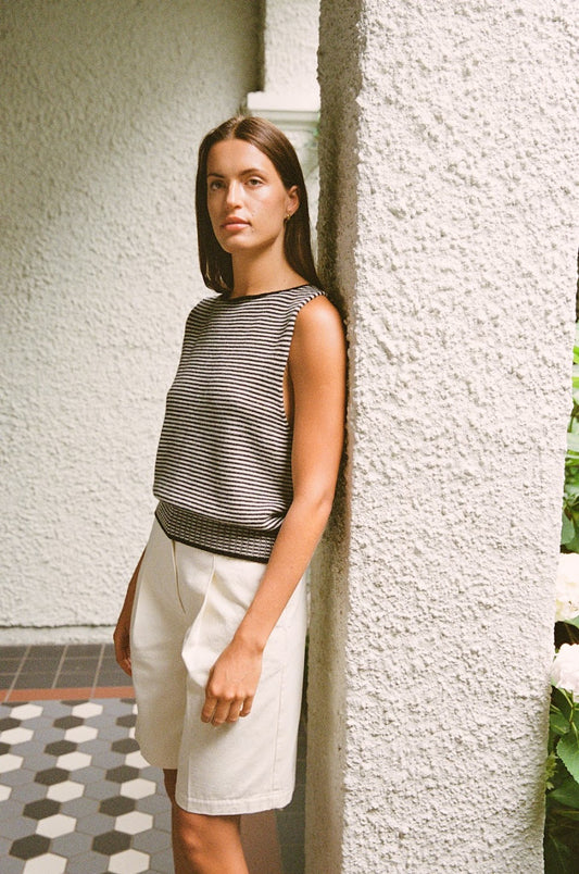 Francie Star Knit Vest Black/Creme Stripe