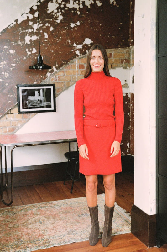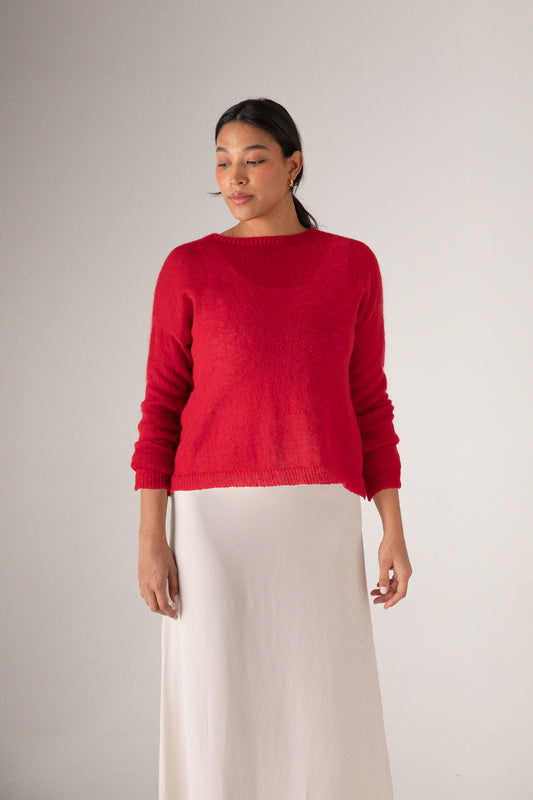 Francie Feather Knit - Cherry