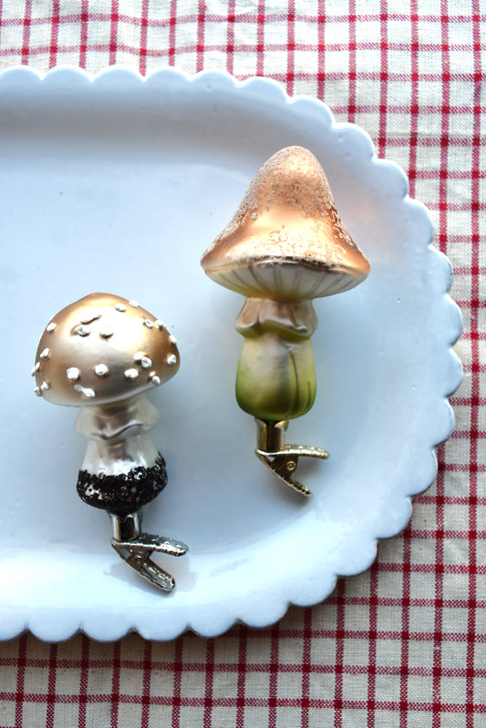 German Glass Christmas Ornament Set - Brown Mushrooms Pair