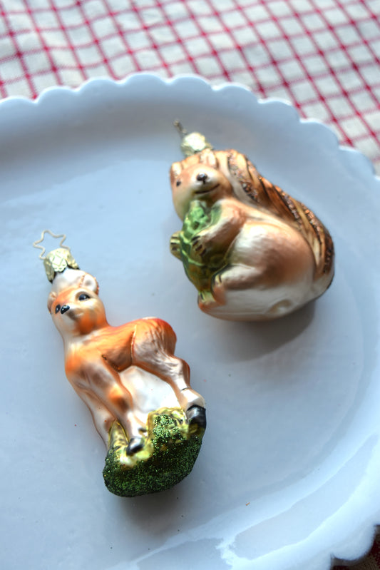 German Glass Christmas Ornament Set - Fawn And Squirrel