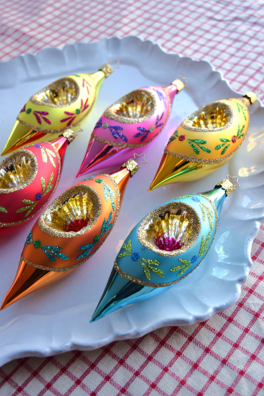 German Glass Christmas Ornament Set - Large Long Shiny Brite