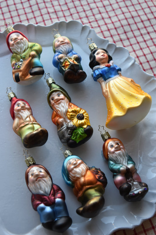 German Glass Christmas Ornament Set - Snow White & the Seven Dwarves