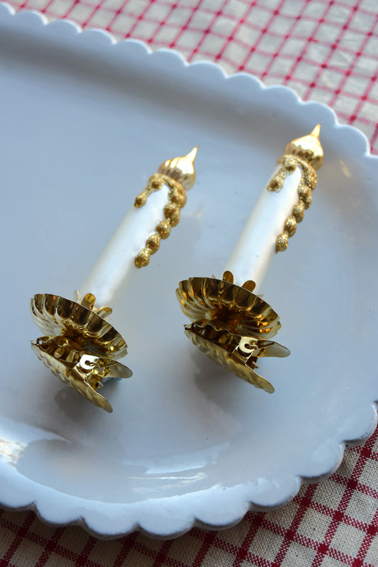 German Glass Christmas Ornament Set - White And Gold Candle Pair