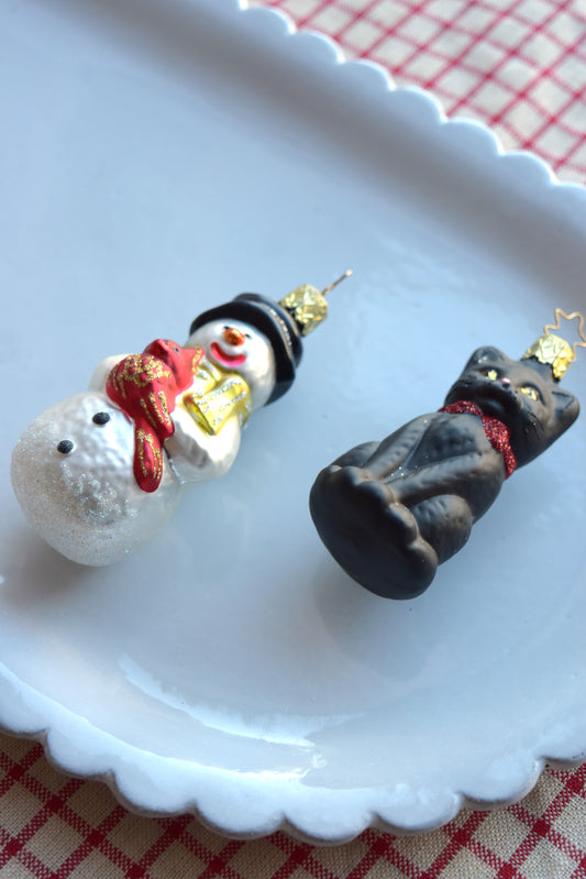 German Glass Christmas Ornaments - Black Cat Or Snowman