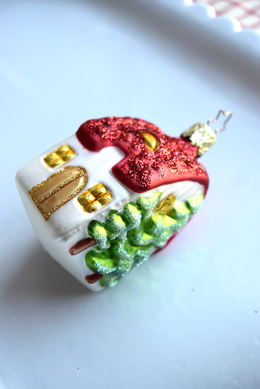 German Glass Christmas Ornaments - Fruit Basket Or House