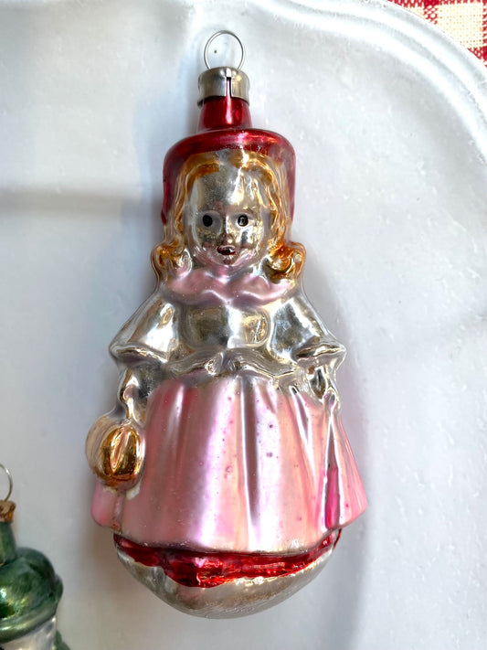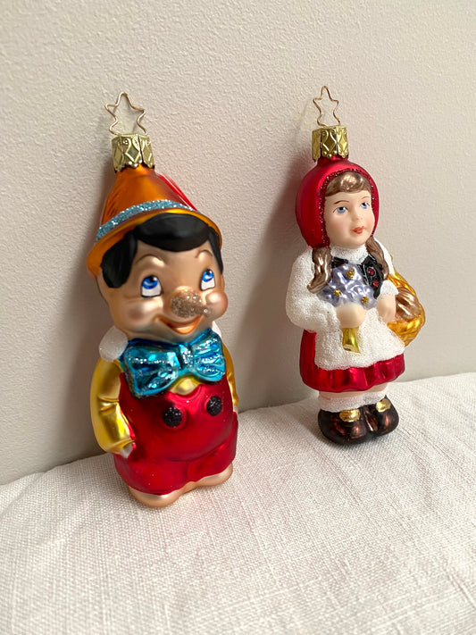 German Glass Christmas Ornaments - Pinocchio or Red Riding Hood