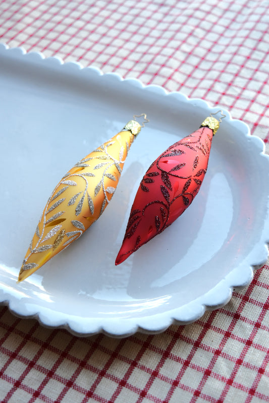 German Glass Christmas Ornaments - Red Or Gold Drop