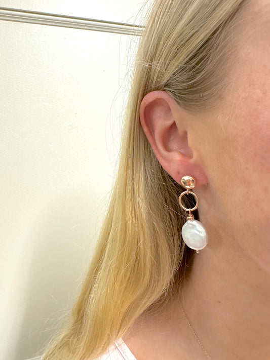 Italian Coin Pearl And Large Circle Link Short Necklace