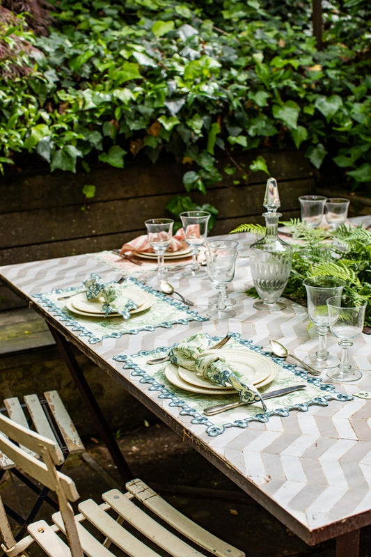 Italian Cotton 'Amalfi' Pair of Placemats - Toile Verde