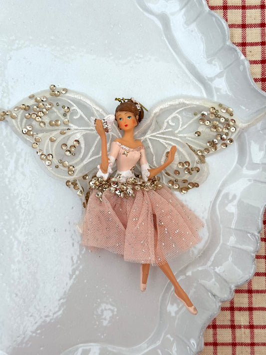 Pink And White Fairy Ballerina With Large Wings - Christmas Ornament Sets