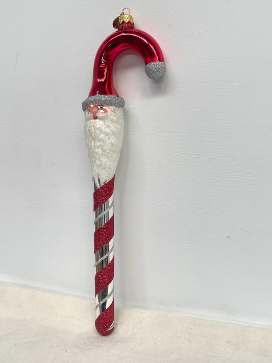 Polish Glass Christmas Ornament - Candy Cane Santa