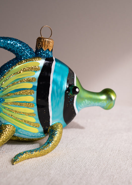 Polish Glass Christmas Ornament - Blue Striped Fish