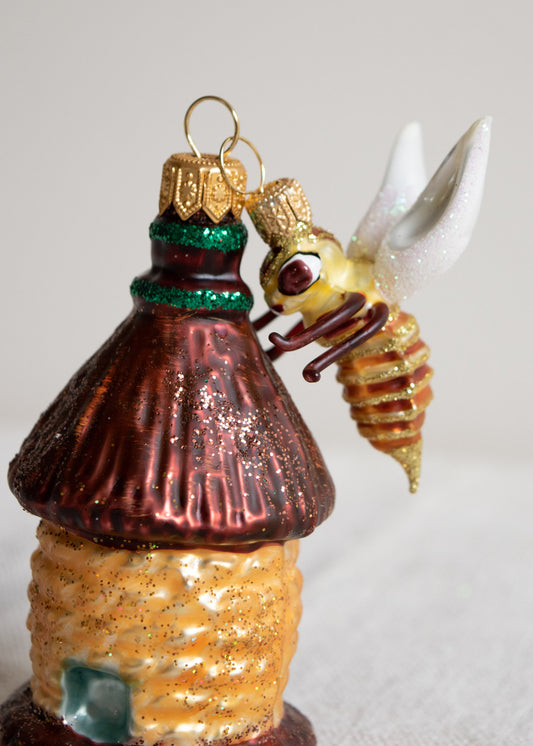 Polish Glass Christmas Ornament - Black & Gold Beetle