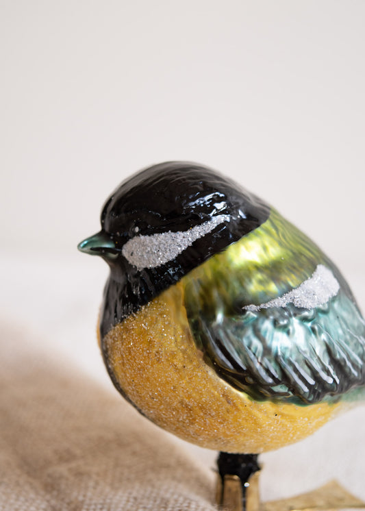 Polish Glass Christmas Ornament - Blue & Yellow Chubby Bird