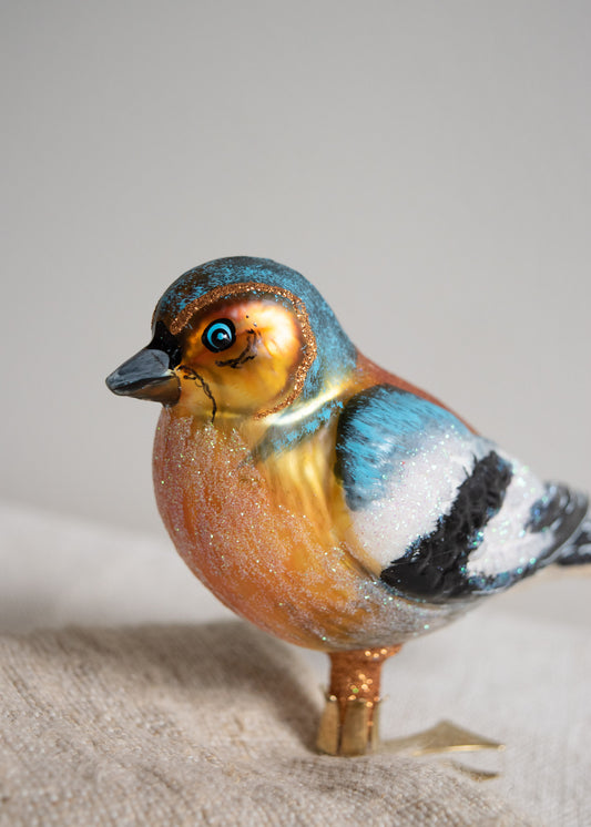 Polish Glass Christmas Ornament - Blue & Orange Chaffinch