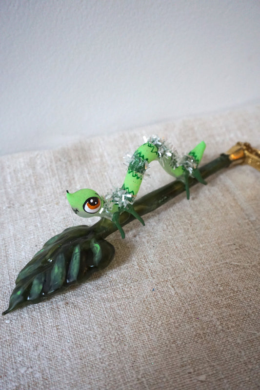 Polish Glass Christmas Ornament - Caterpillar on Leaf