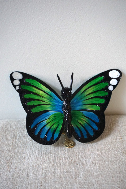 Pink Butterfly Bell & Flower - Pair of Nostalgic German Christmas Ornaments