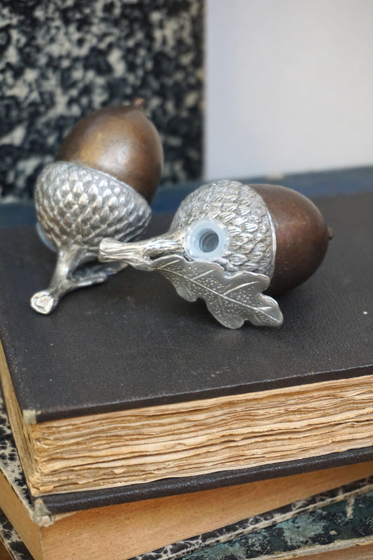 Pewter and Brass Acorn Salt and Pepper Shakers