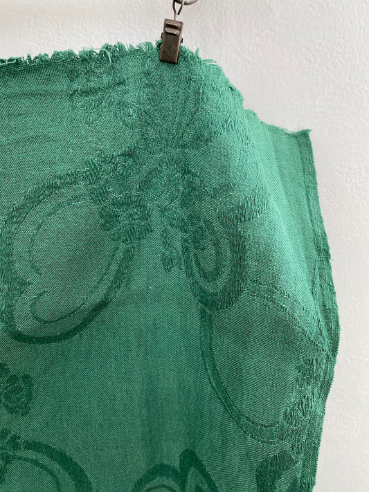 Vintage French Green Cotton Fabric Panel 50x50cm