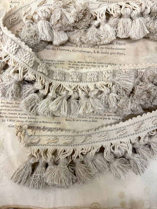 Vintage French Cotton Tassel Trim on Bobbin - Cream