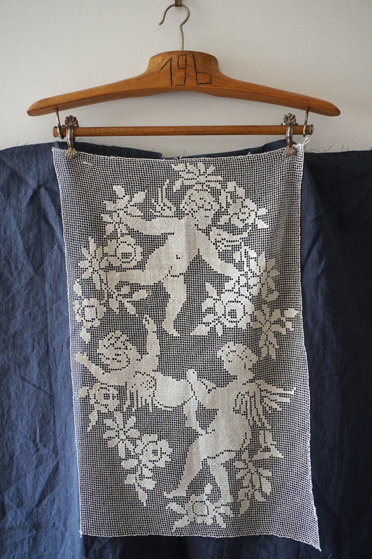 Antique Piece Of Embroidered Lace With Scalloped Edge