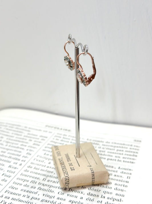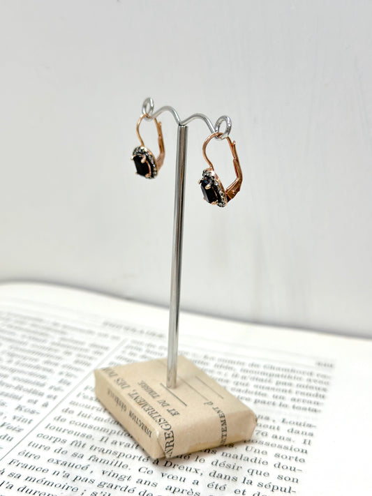 Italian Small Rose Gold Earrings With Dark Blue Crystal Centre