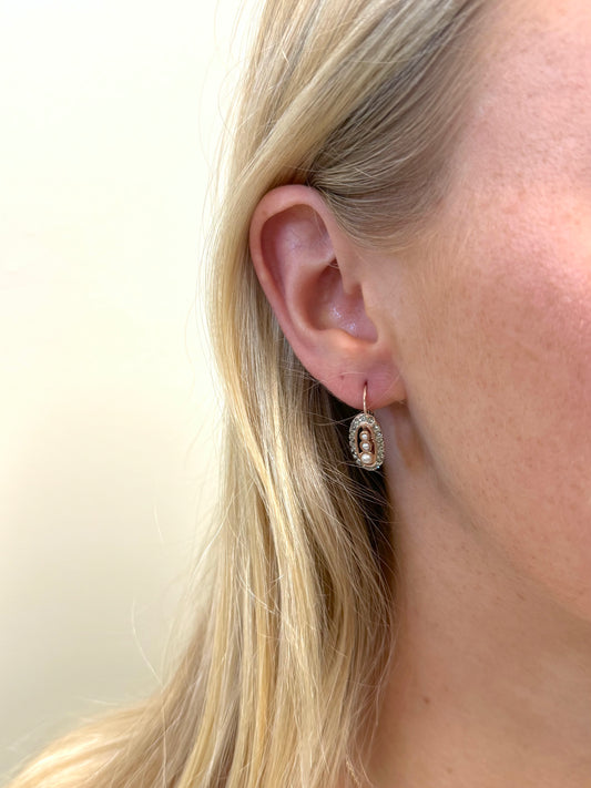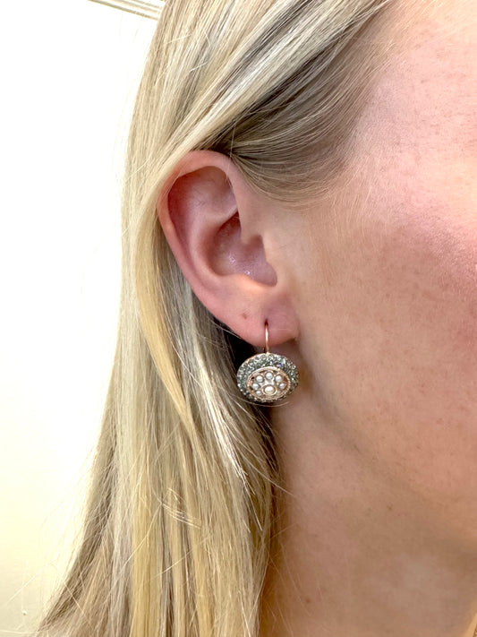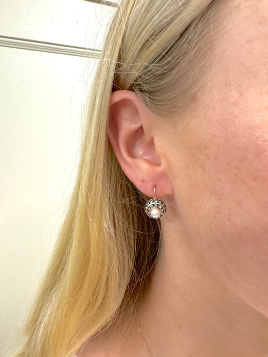 Italian Round Earrings With Small Crystals And Large Pearl Centre