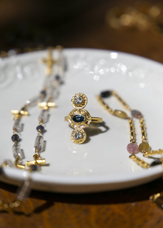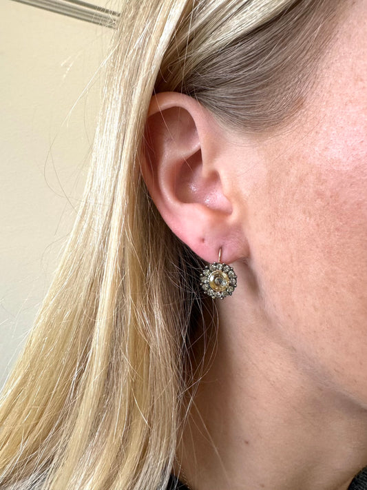 Italian Round Crystal Earring With Smokey Topaz In Centre