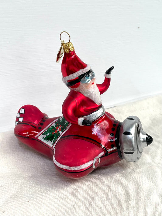 Polish Glass Christmas Ornament - Hourglass Mushroom on Clip