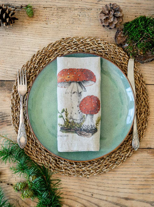 European Linen 'Forest Mushrooms' Set of 6 Linen Napkins