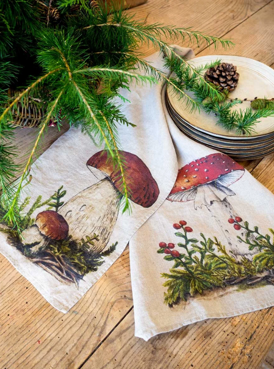 European Linen 'Forest Mushrooms' Pair of Tea Towels