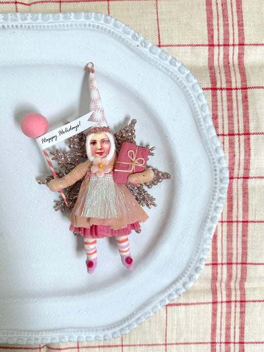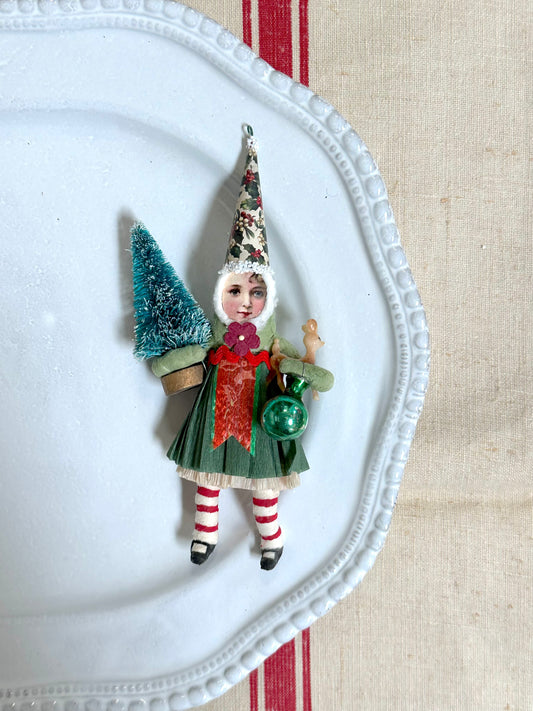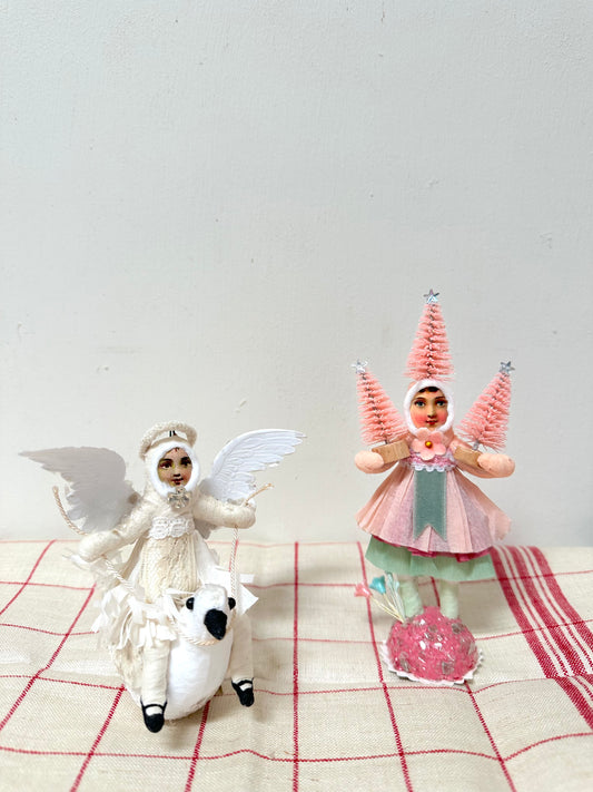 Vintage by Crystal is a husband and wife crafting team that creates a whimsical world of vintage inspired spun cotton figures and ornaments in their home studio in New York. Each piece is carefully handcrafted using a wide range of materials other than spun cotton, including forest floor finds, old antiques and forgotten treasures.