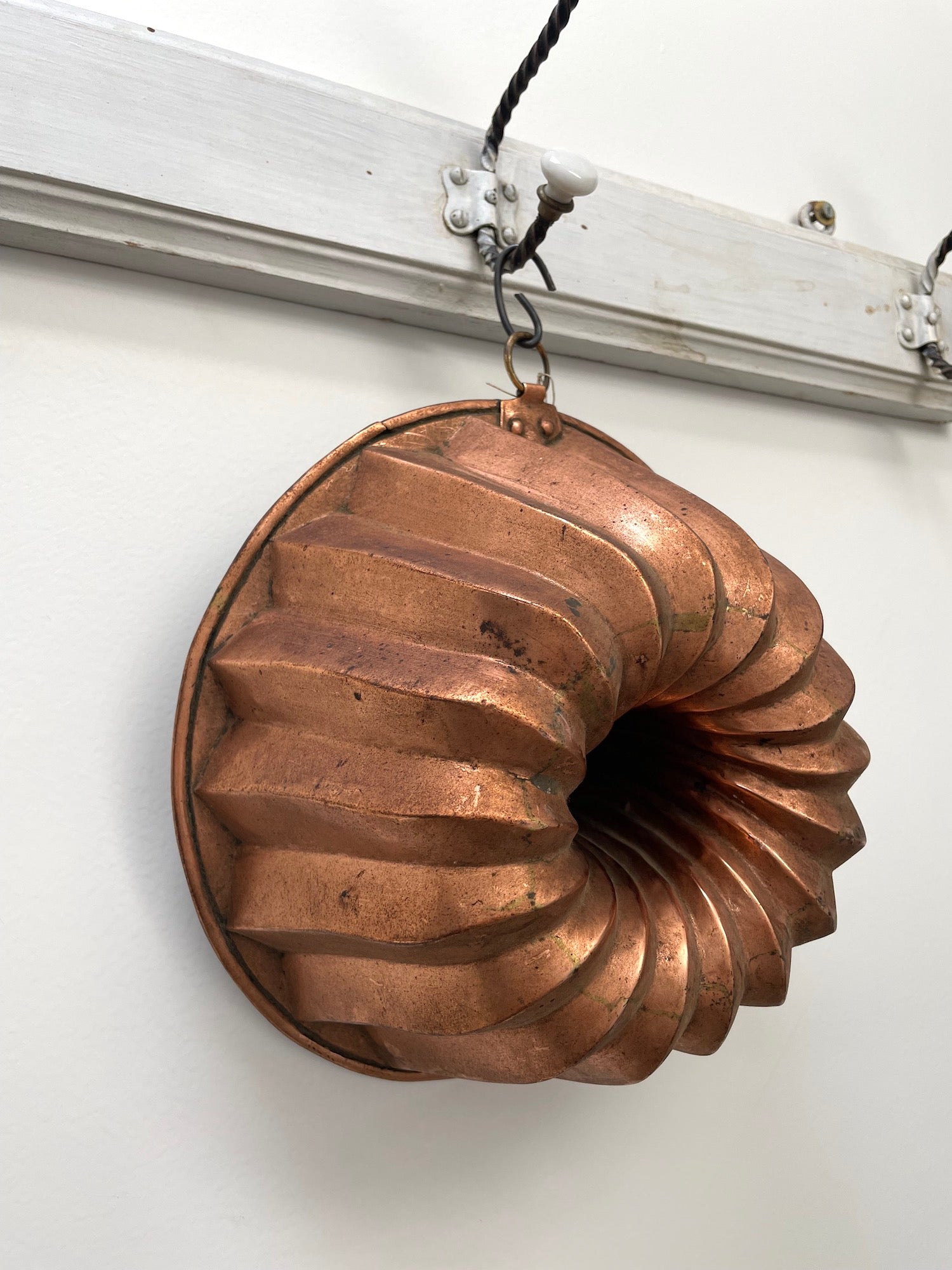 Antique French large-sized copper jelly mould with a traditional 'swirled turret' pattern. Looks fabulous hanging in the kitchen or great for use if you get it lined with tin.