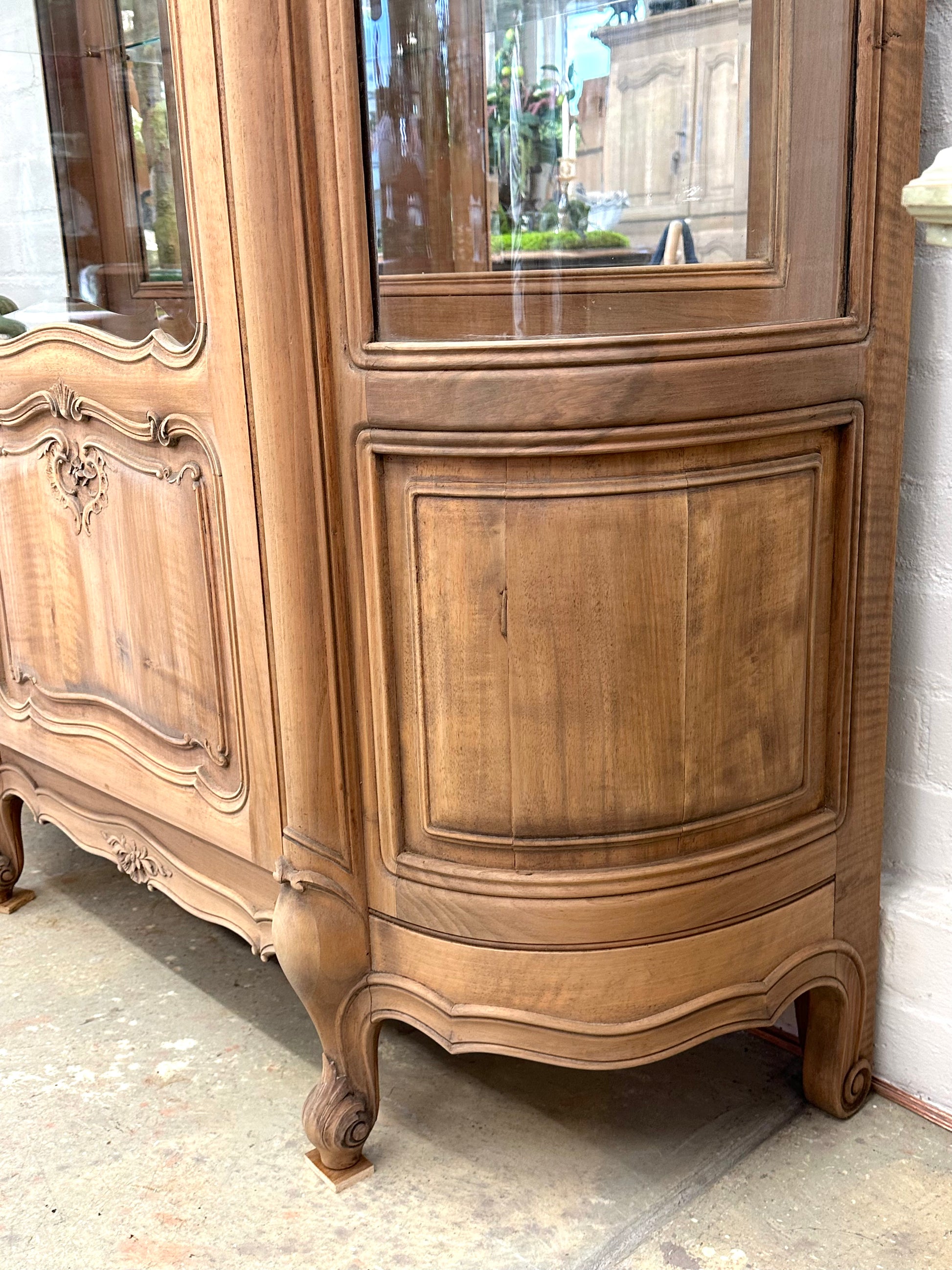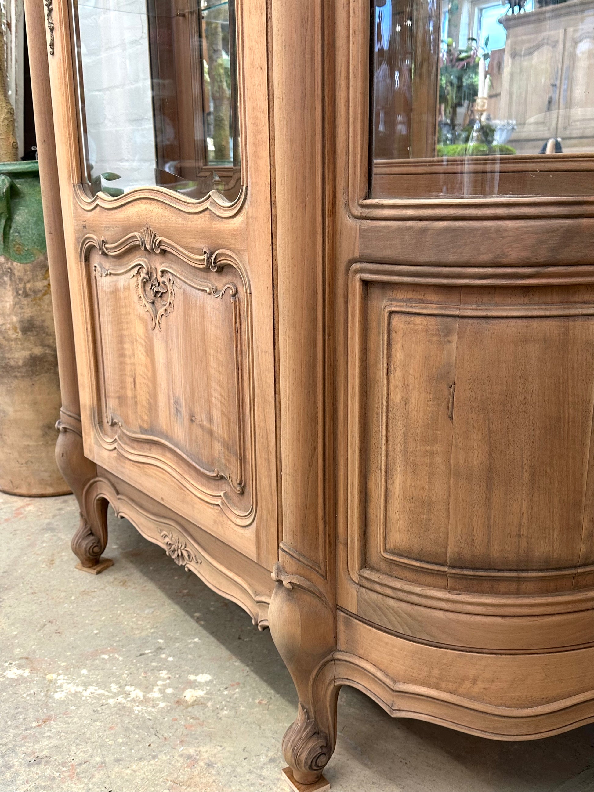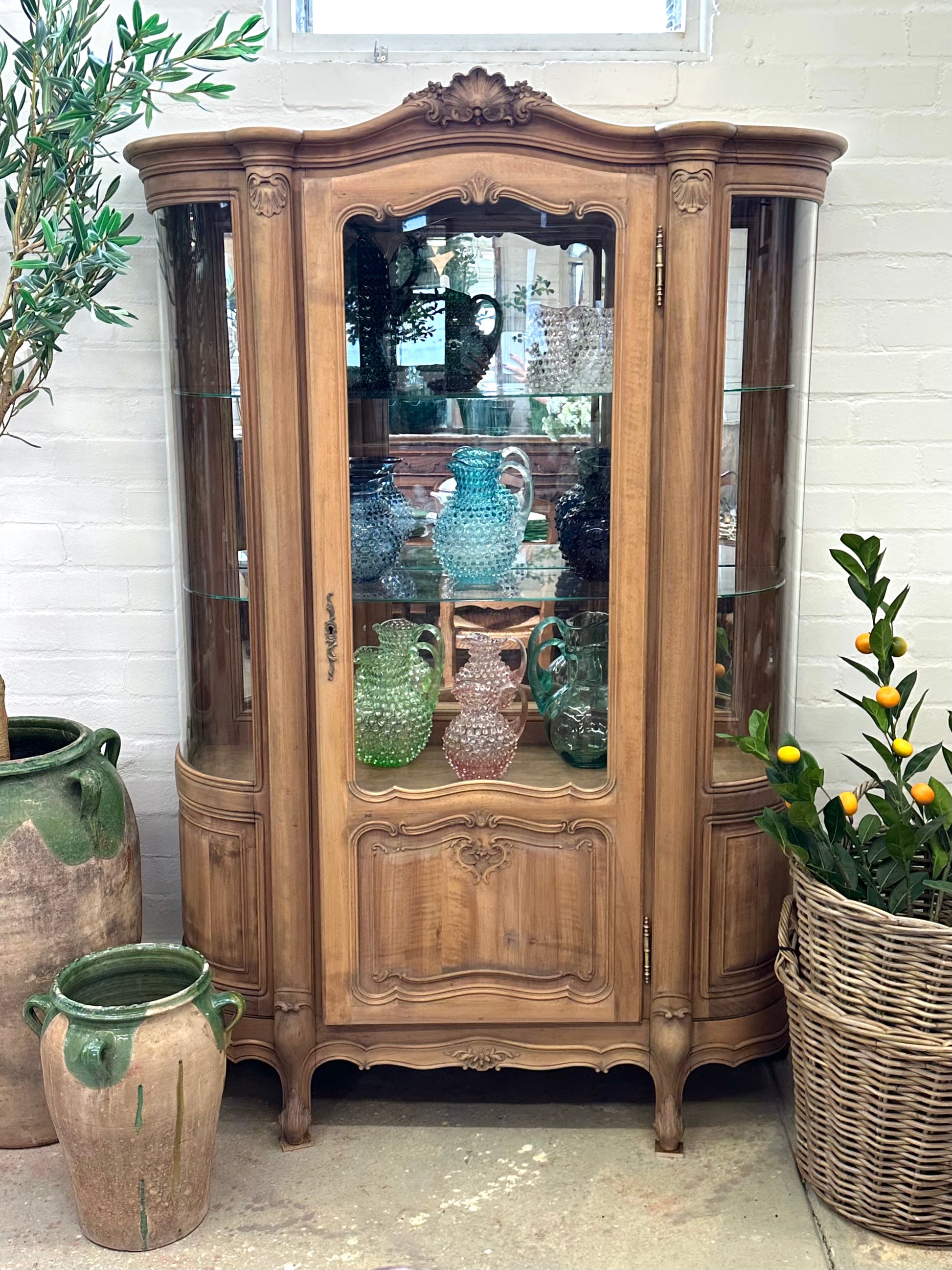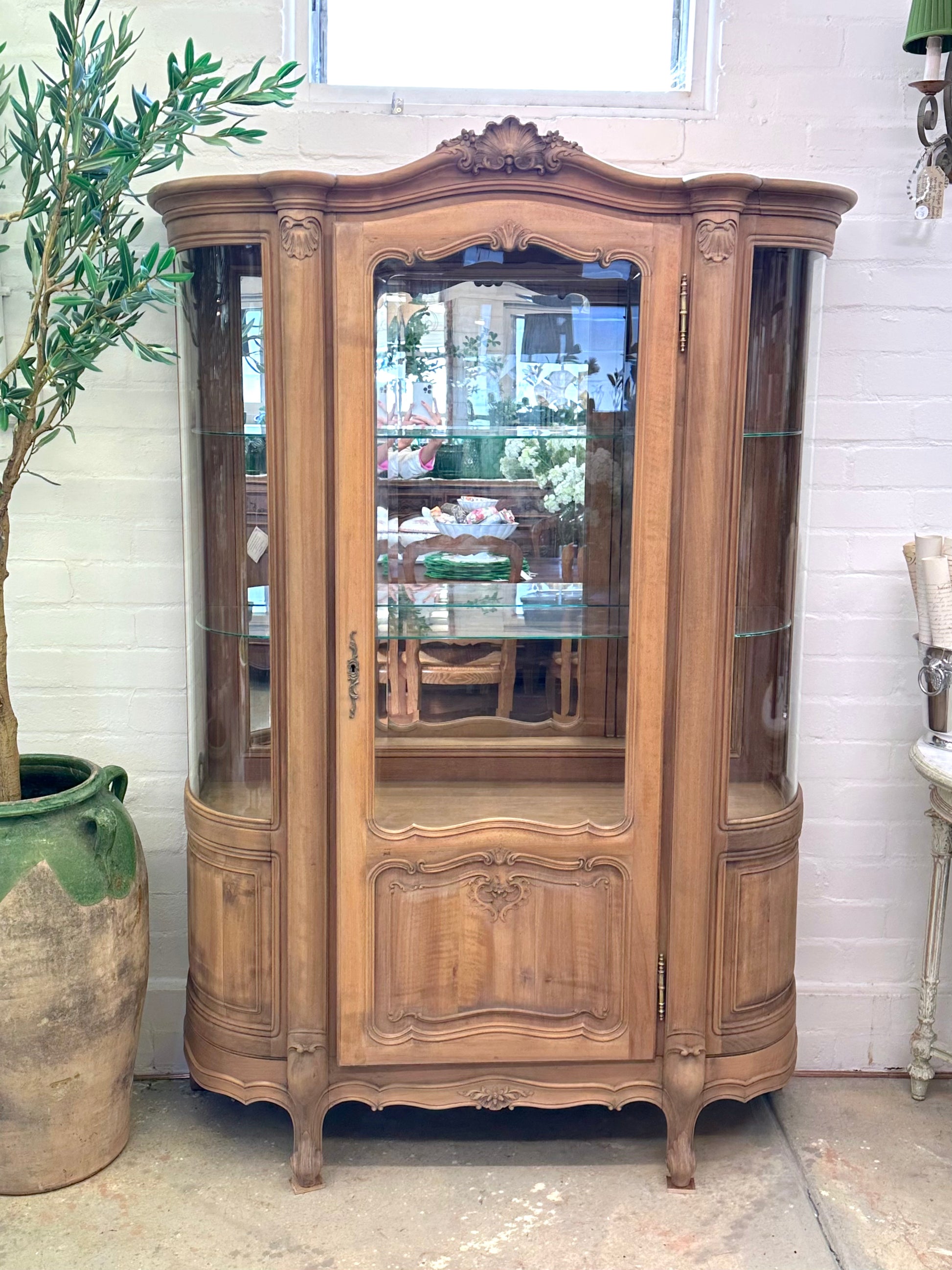 Vintage French Walnut Vitrine With Curved Glass Sides