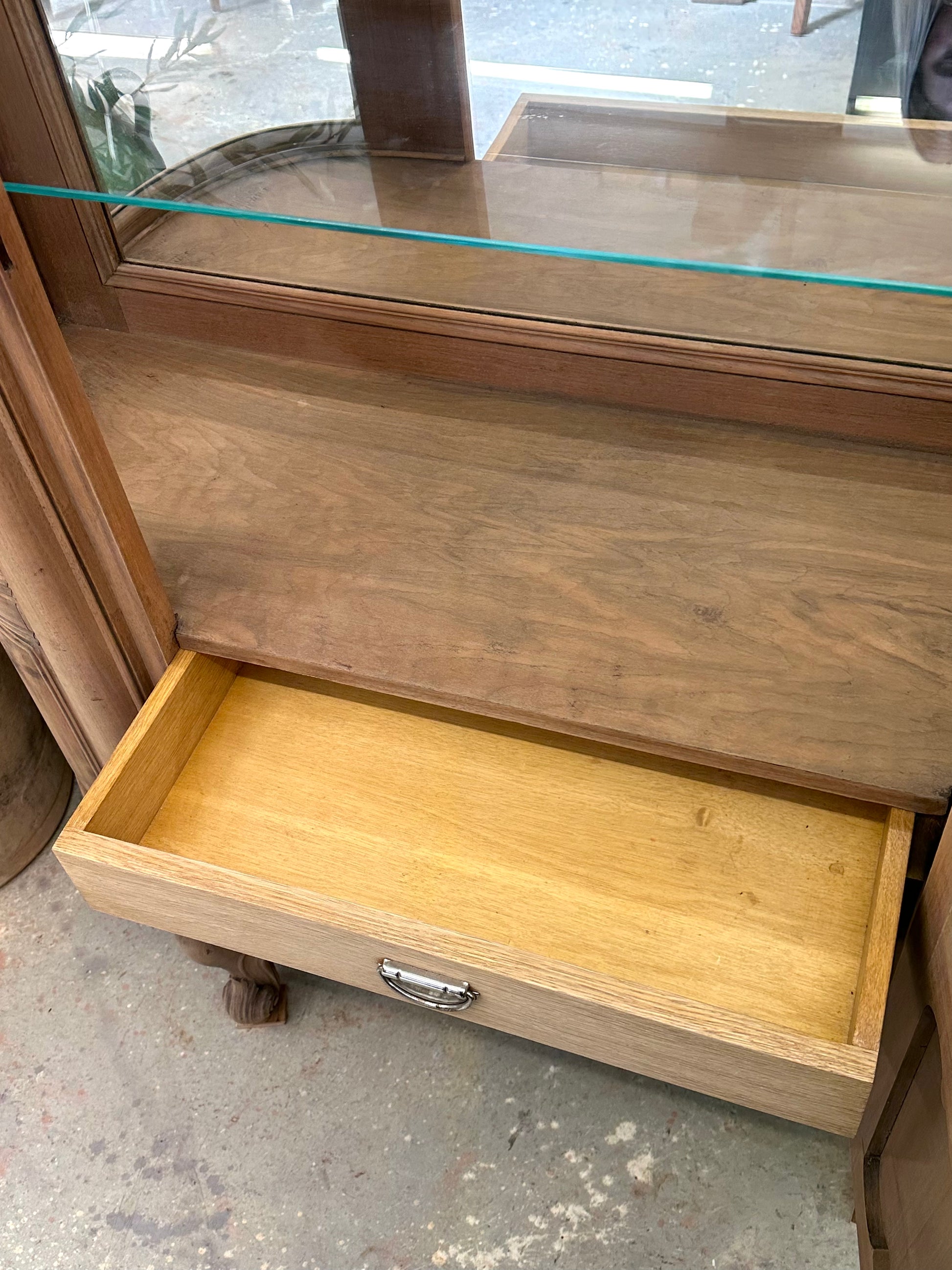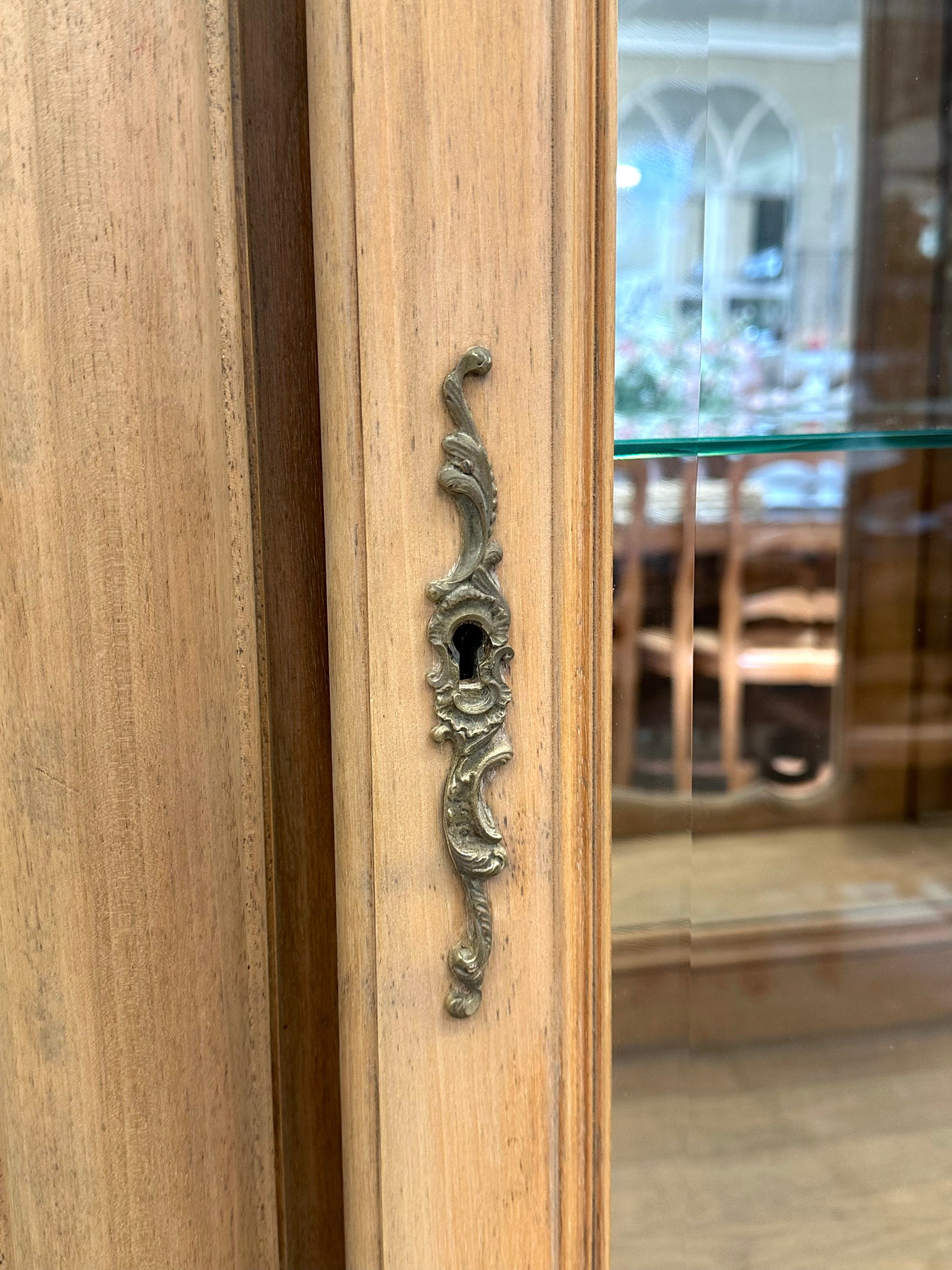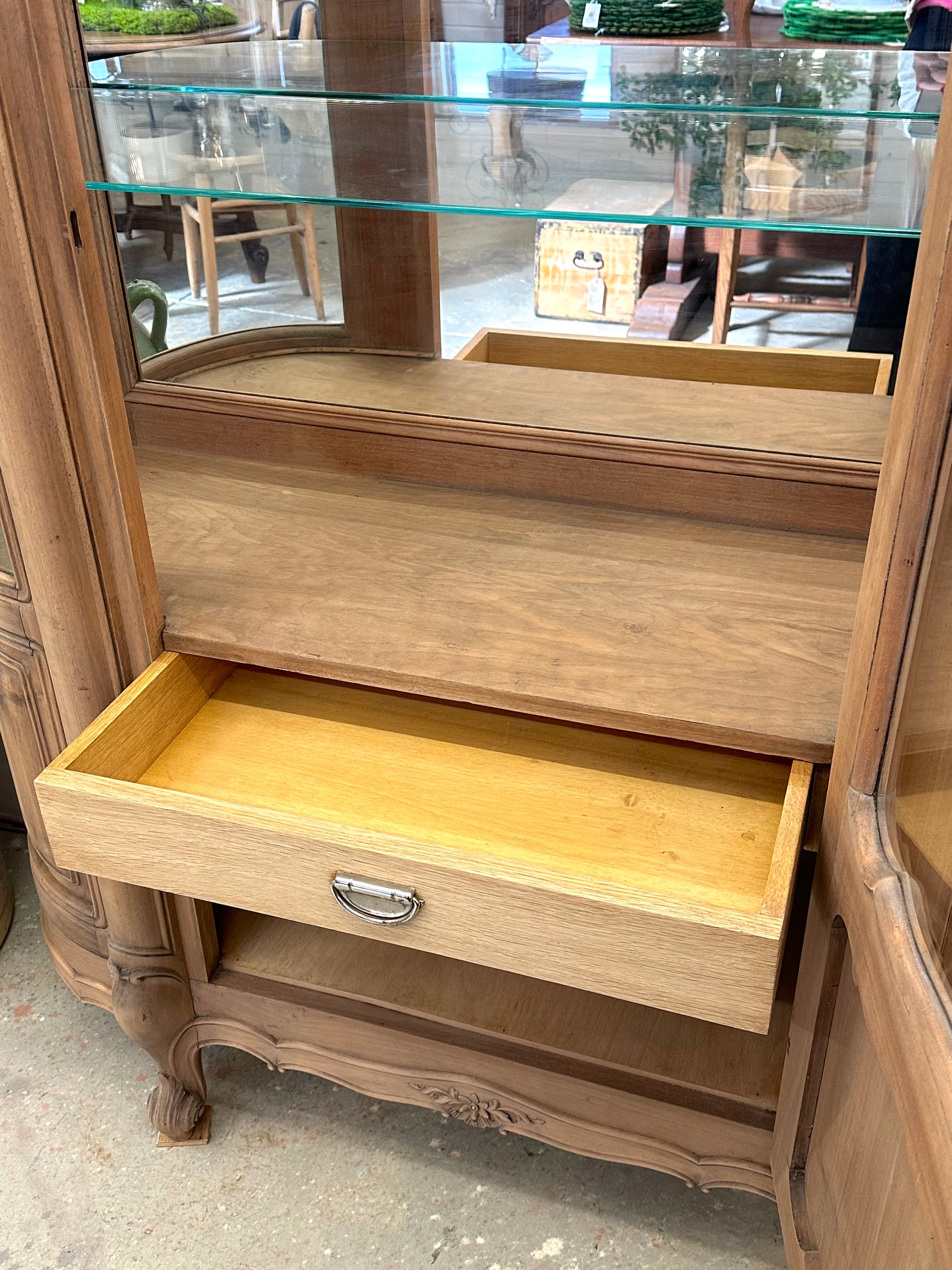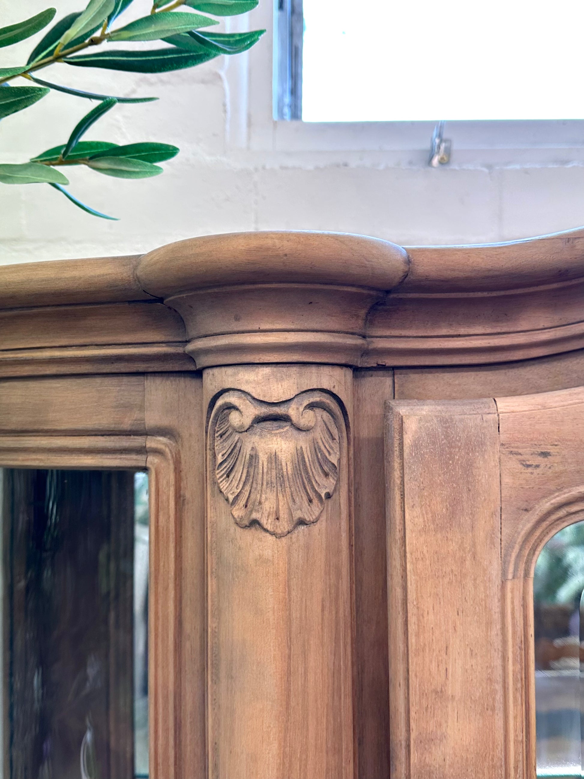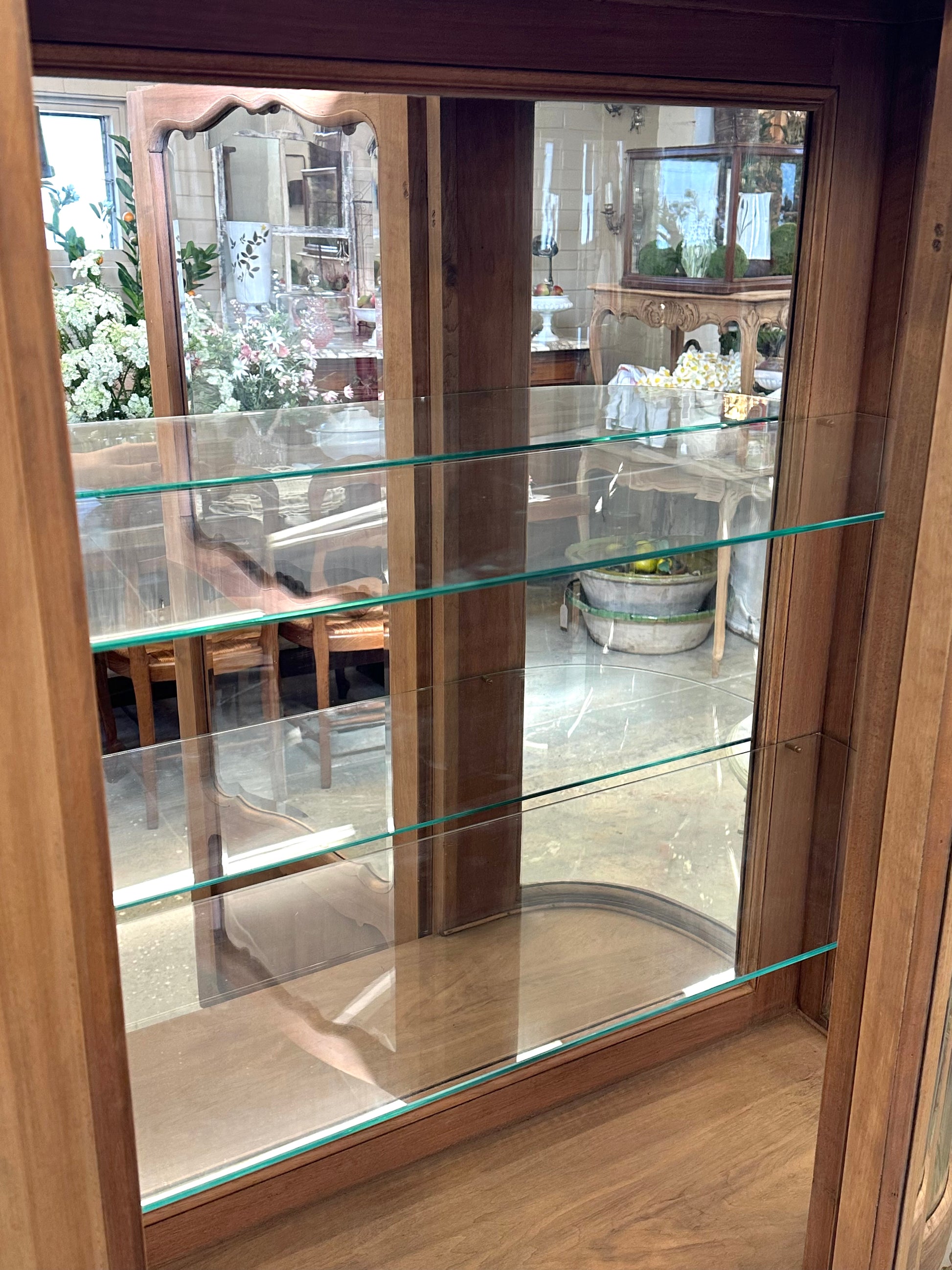 Vintage French Walnut Vitrine With Curved Glass Sides