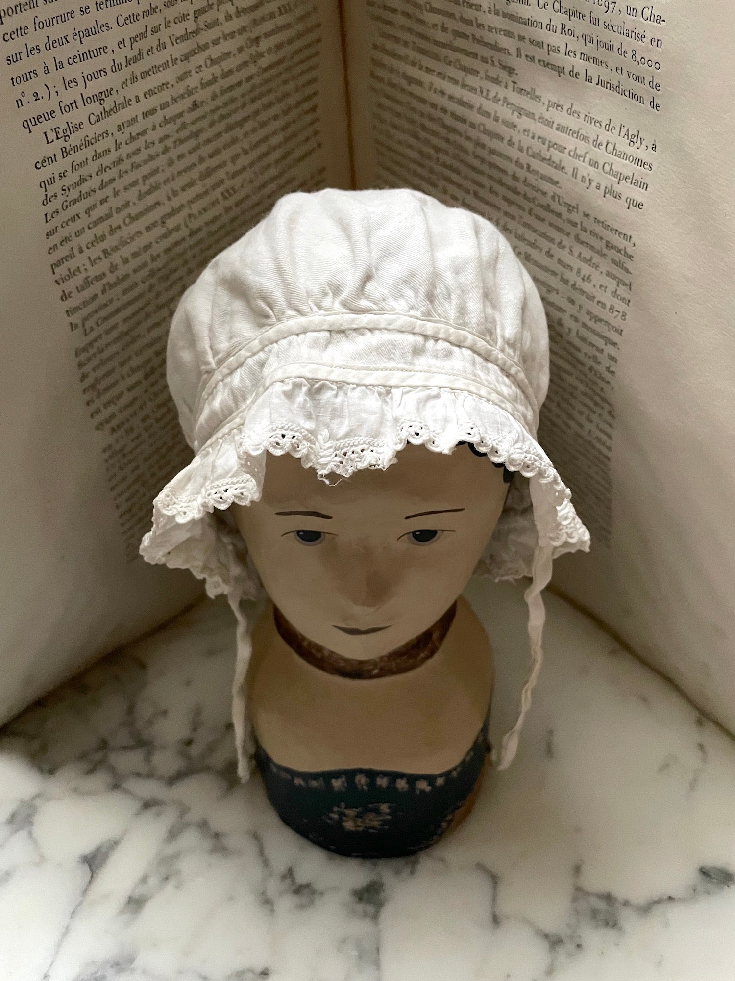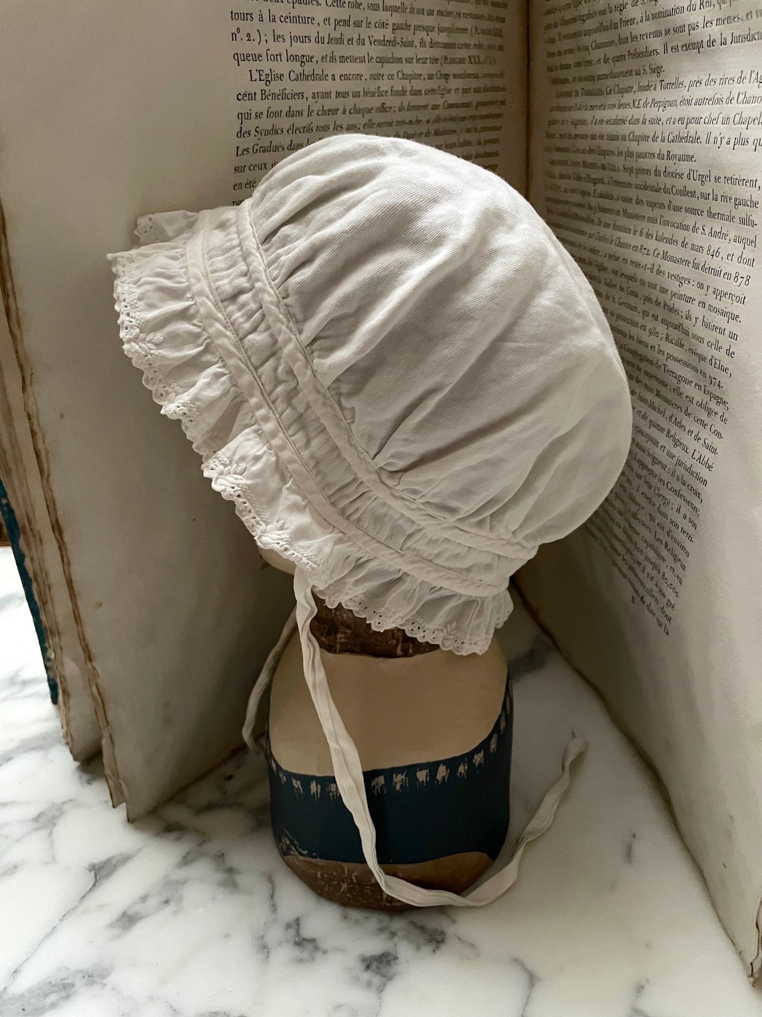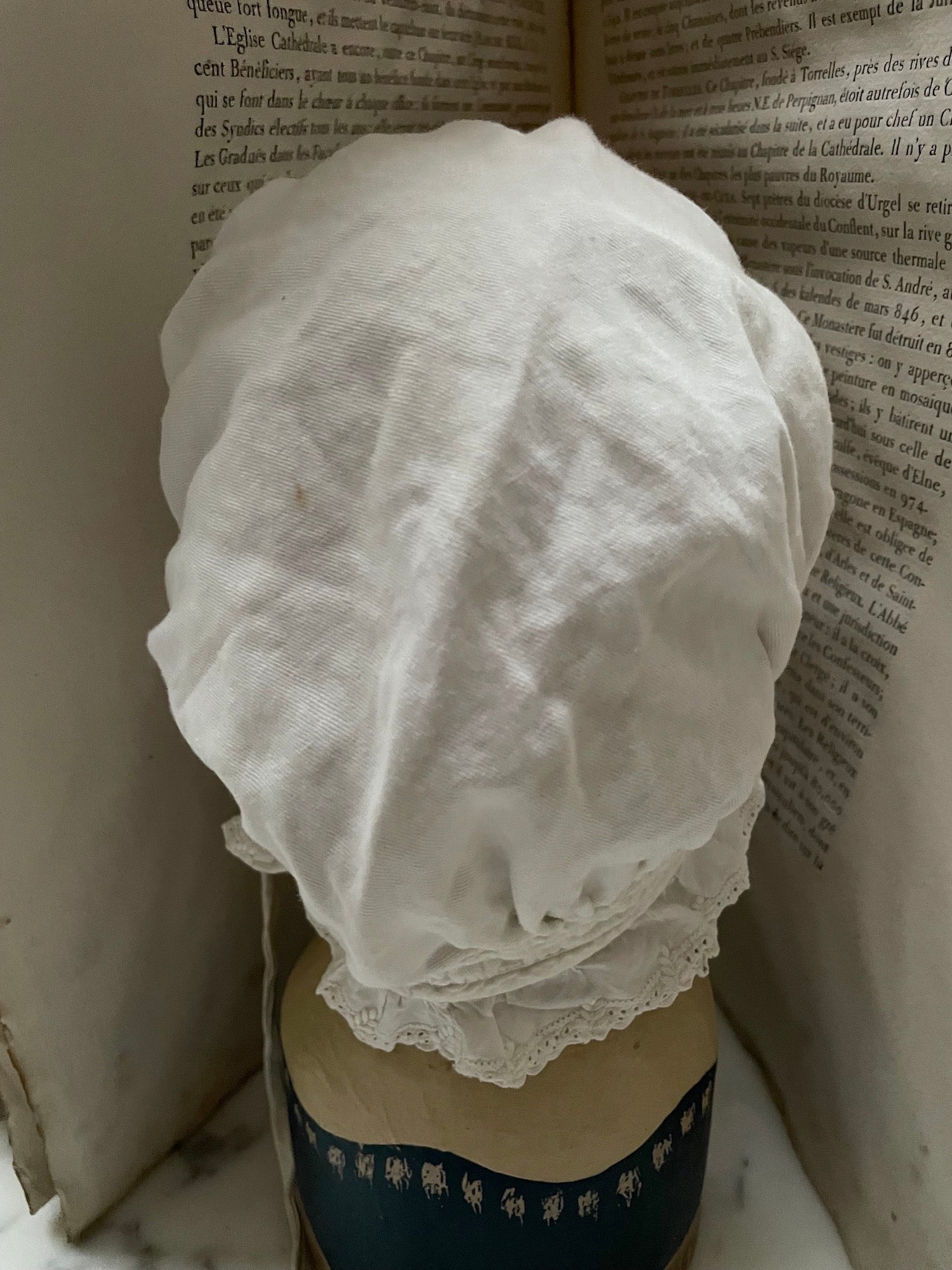 Antique French Lace Trimmed Cotton 'Mob cap' - I