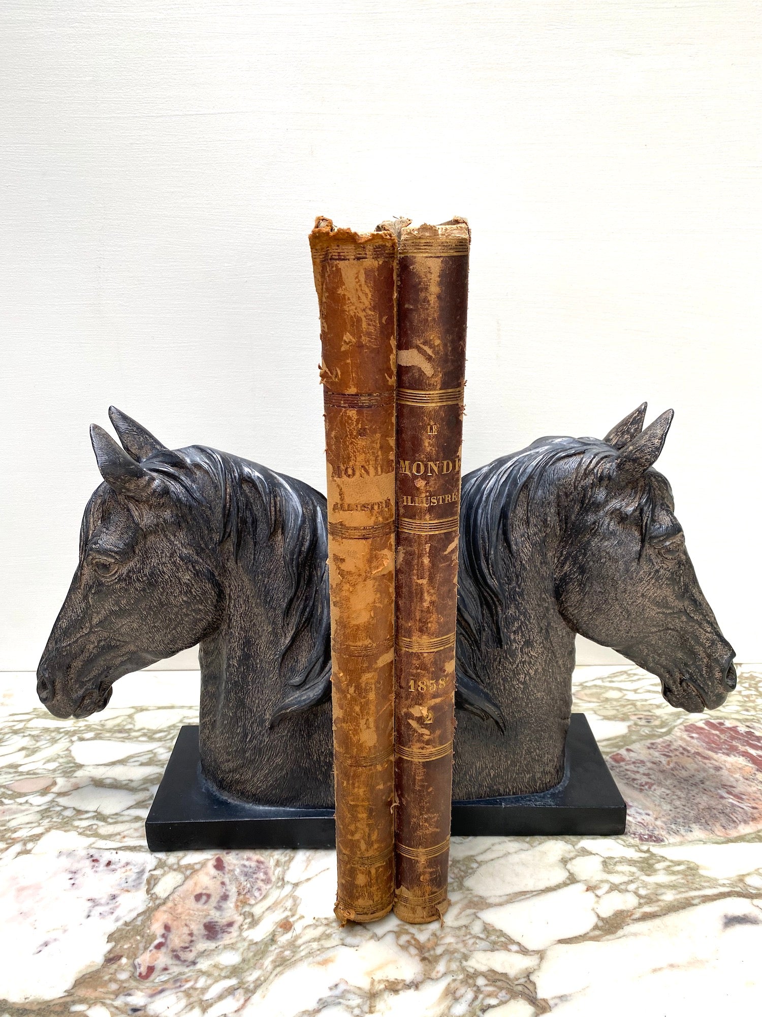 Antique French "Le Monde Illustré" Bound Newspaper Archive 1858. Incredible collection of original Parisian newspapers, preserved by unique binding. A remarkable piece of history. Brown leather spines with gold name and year. Endpapers are beautifully marbled deep green.