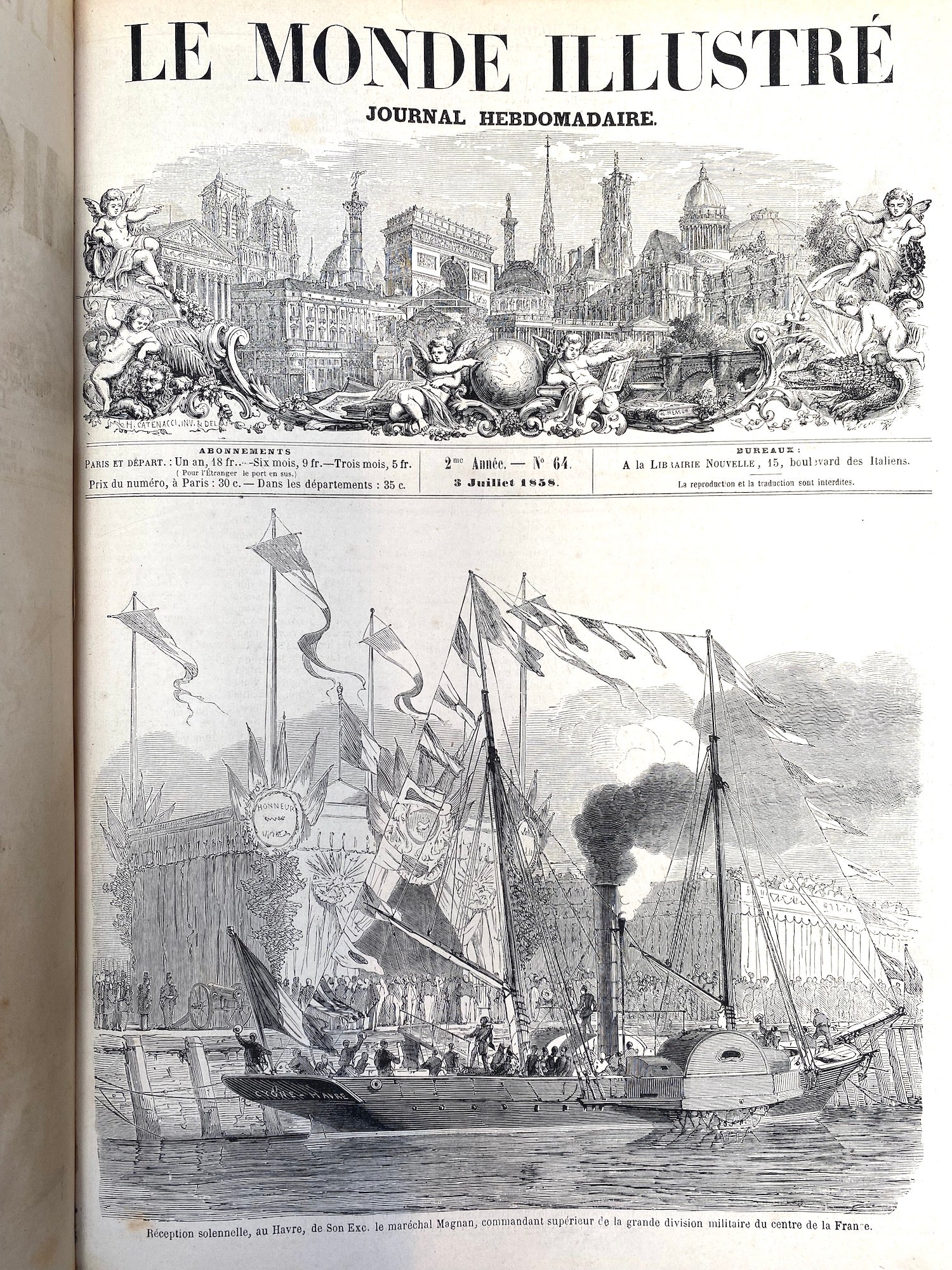 Antique French "Le Monde Illustré" Bound Newspaper Archive 1858