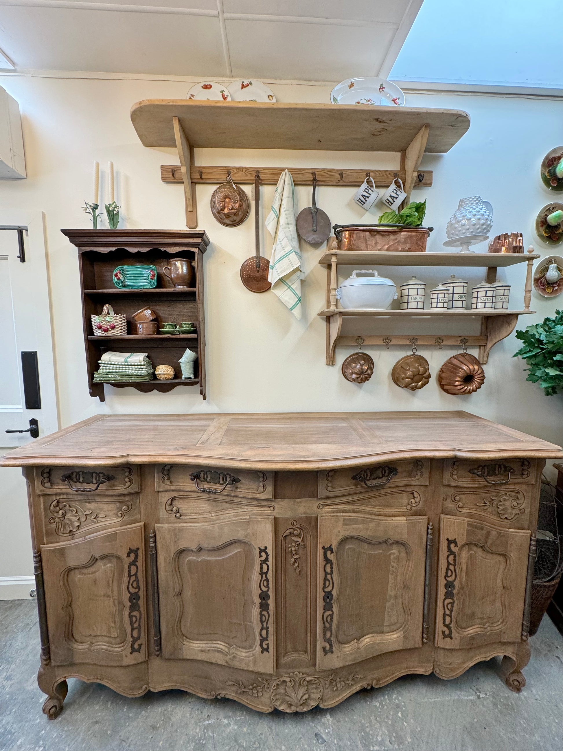 Antique French Louis XV Walnut 4 Door Serpentine Sideboard
