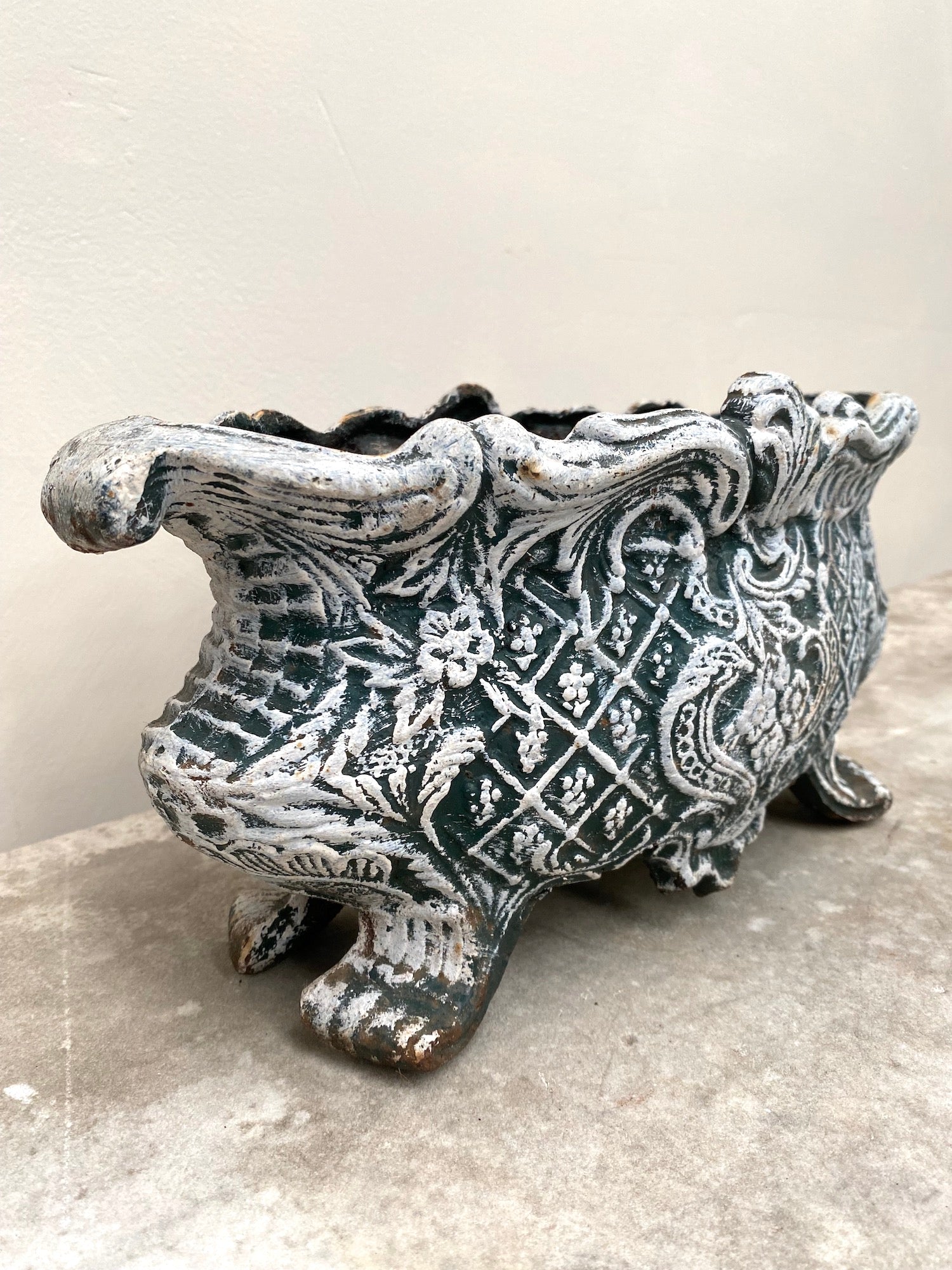 Antique French Pair of Mini Cast Iron Jardinere - Green & White