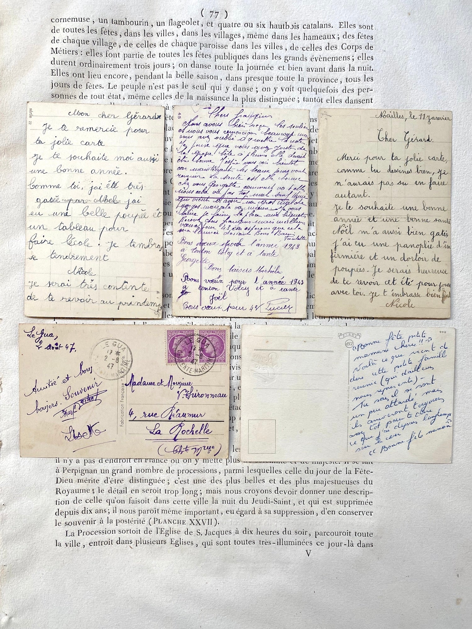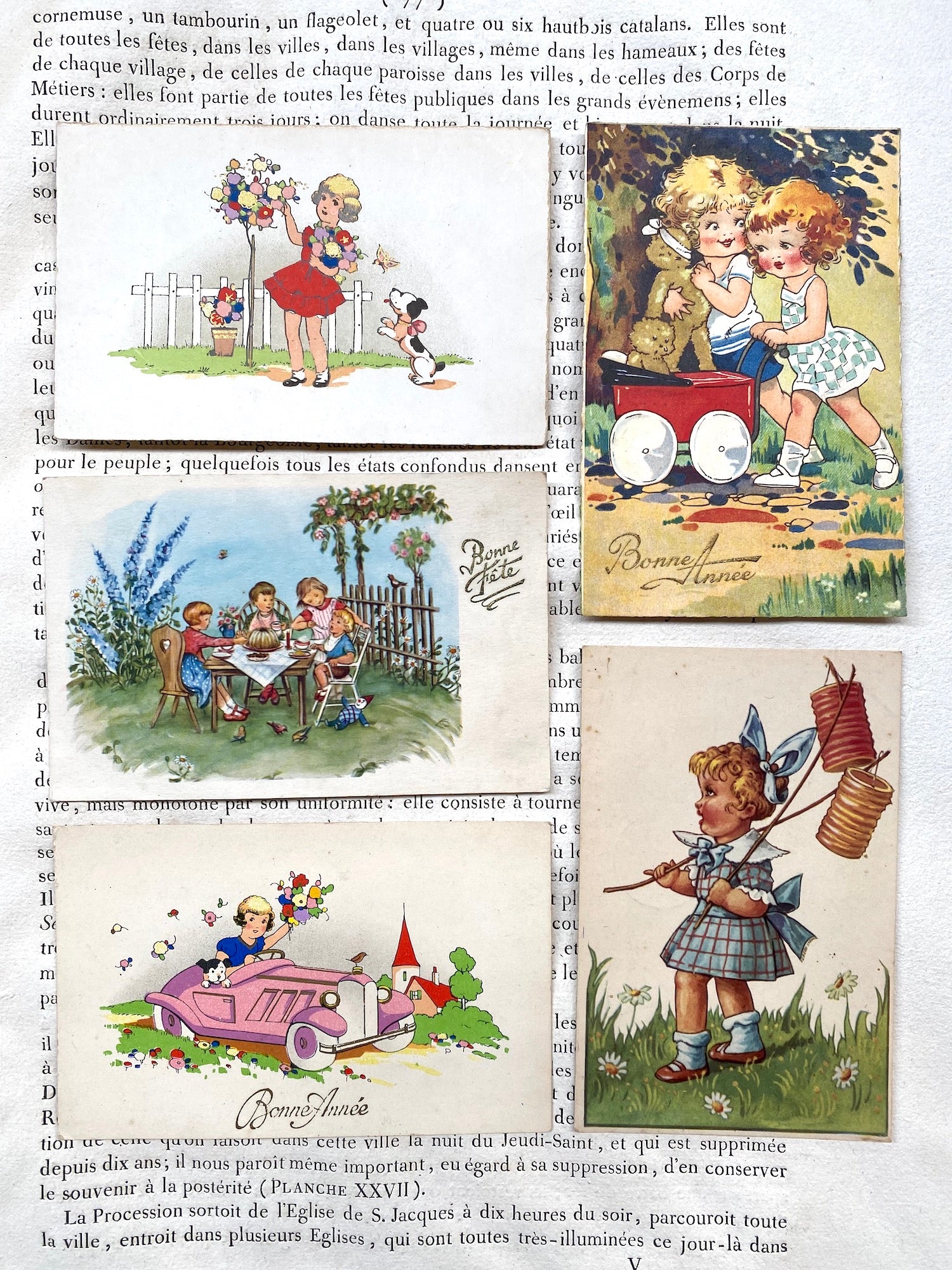 This beautiful set of 5 postcards features beautiful illustrations of children. Messages include 'bonne année' (happy new year), and 'bonne fête' (happy holiday)