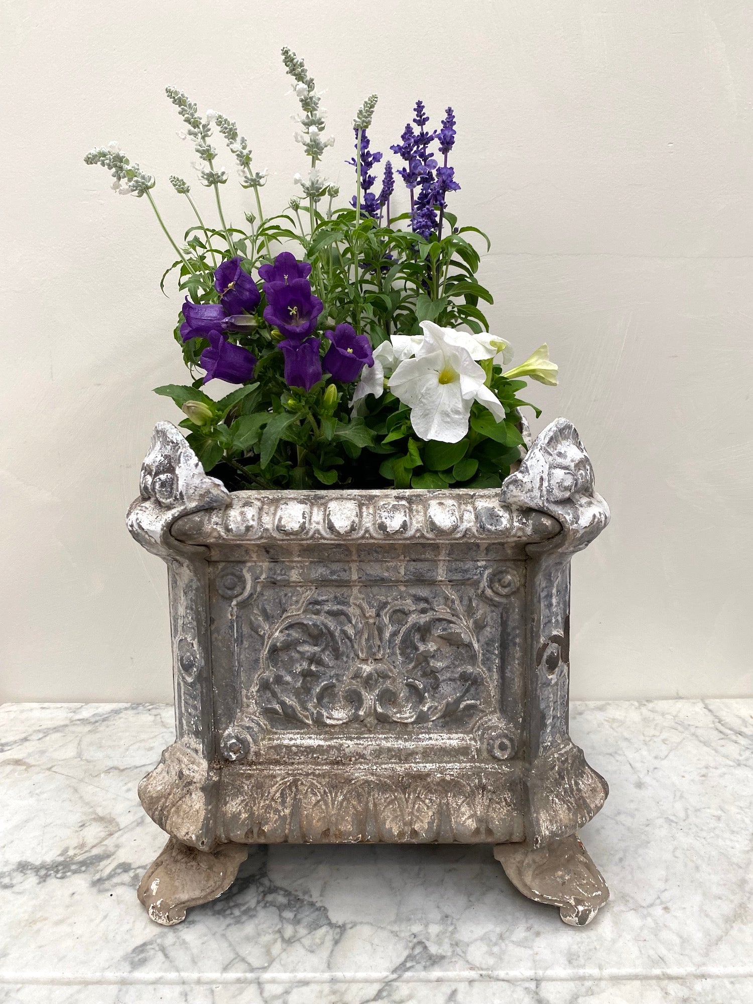 Antique French Square Cast Iron Jardinere White Painted Finish